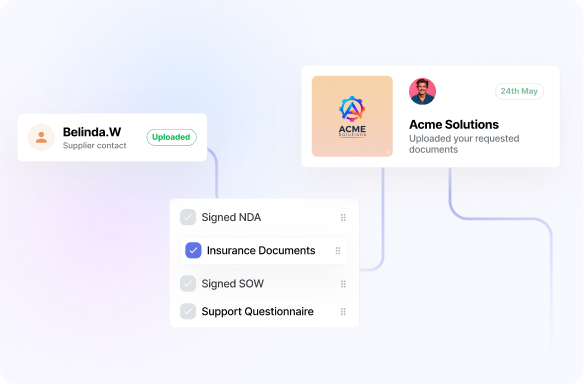 Suppliers upload documents themselves, in the right place, with no back-and-forth or “did you get my attachment?” follow-ups.